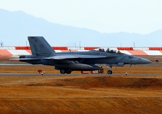 米海軍艦載機 F/A-18F スーパーホーネット 戦闘攻撃機(岩国基地)、NF、100番機 |