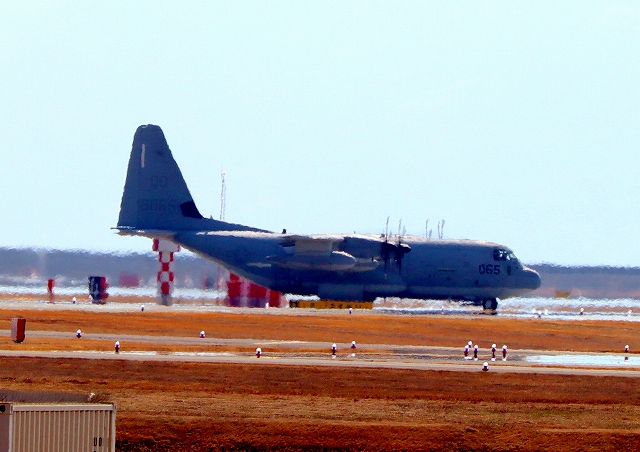 米海兵隊 KC-130J 空中給油機 スーパーハーキュリーズ(岩国基地)、8065番機が着陸 |