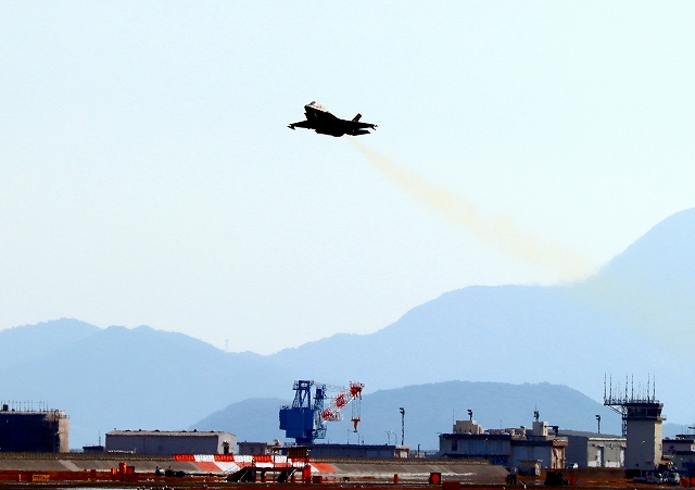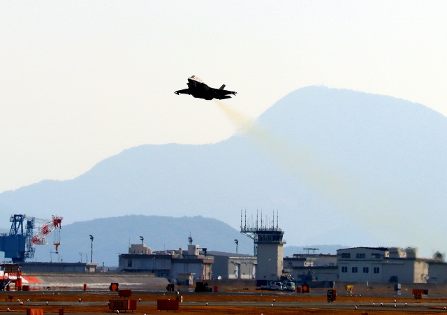 米海兵隊 F-35B ライトニングⅡ 戦闘機(岩国基地)、VK、07番機が離陸 |