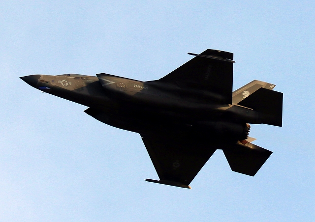米海兵隊 F-35B ライトニングⅡ 戦闘機(岩国基地)、VK、12番機が離陸 |