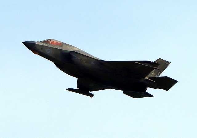 米海兵隊 F-35B ライトニングⅡ 戦闘機(岩国基地)、VK、05番機が離陸 |