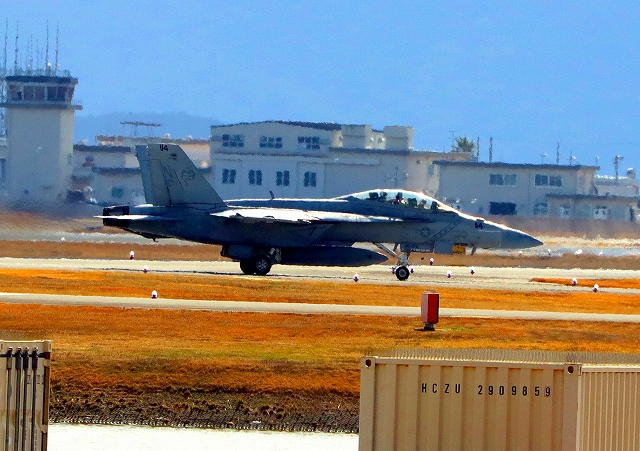 米海軍艦載機 F/A-18F スーパーホーネット 戦闘攻撃機(岩国基地)、NF、114番機、着陸 |