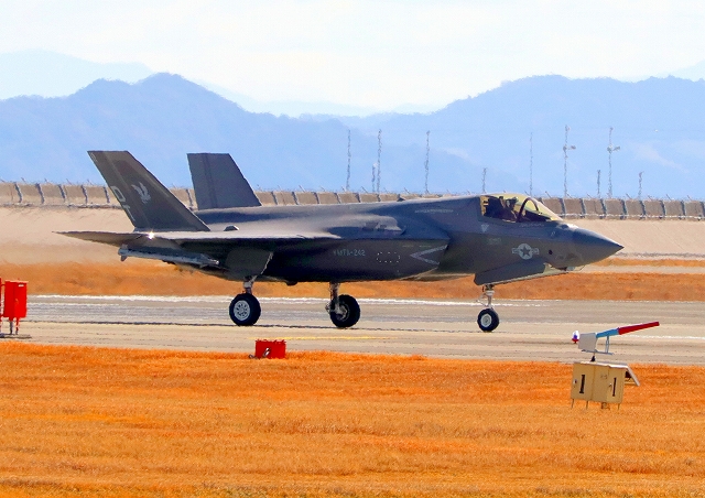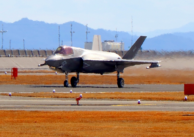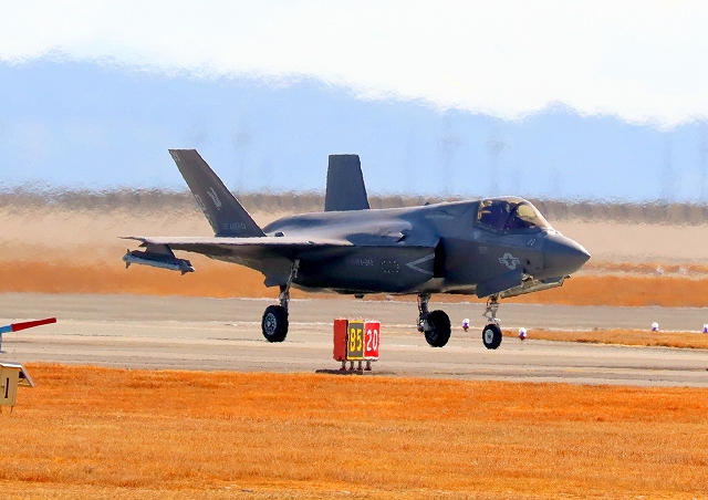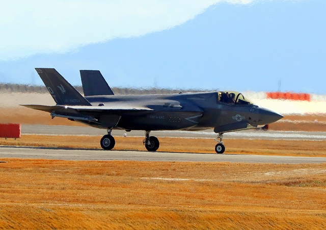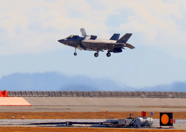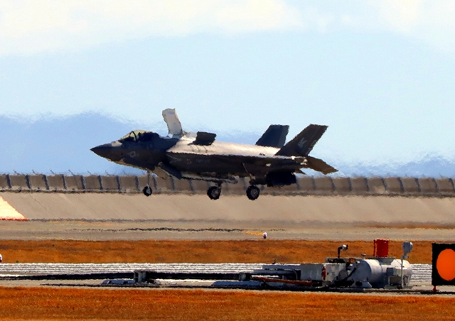 米海兵隊 F-35B ライトニングⅡ 戦闘機(岩国基地)、DT、11番機が着陸 |