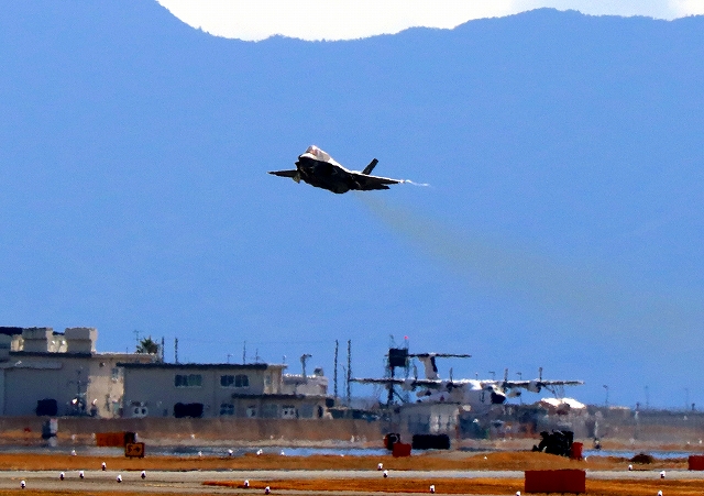 米海兵隊 F-35B ライトニングⅡ 戦闘機(岩国基地)、VK、08番機が離陸 |
