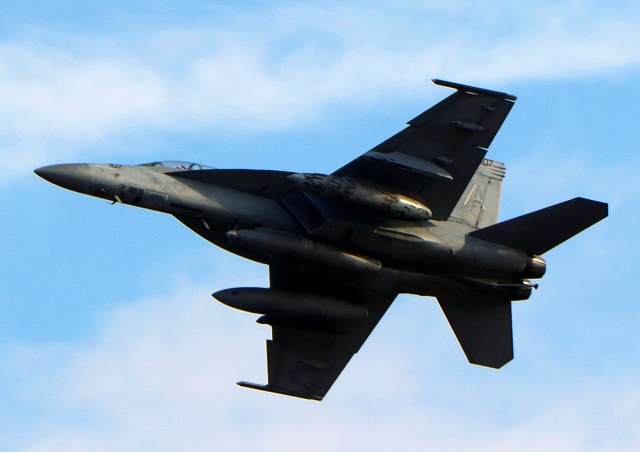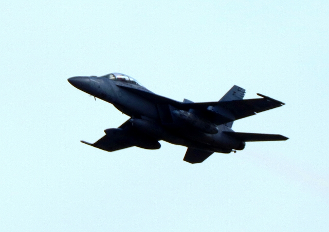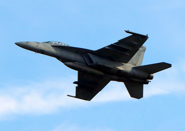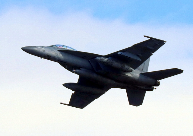 米海軍艦載機 F/A-18F スーパーホーネット 戦闘攻撃機(岩国基地)、NF、101番機が離陸 |