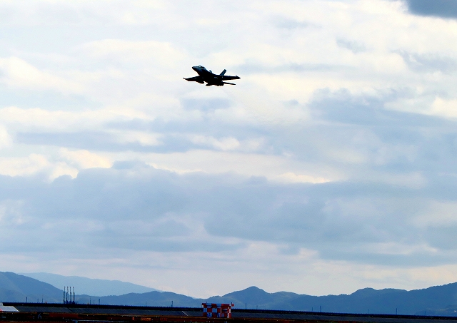 米海軍艦載機 F/A-18F スーパーホーネット 戦闘攻撃機(岩国基地)、NF、107番機が離陸 |