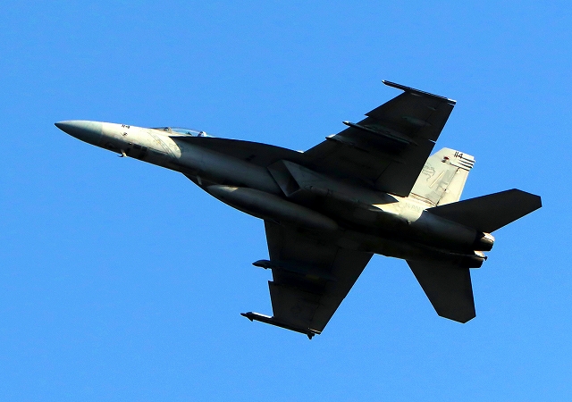 米海軍艦載機 F/A-18F スーパーホーネット 戦闘攻撃機(岩国基地)、NF、114番機が離陸 |