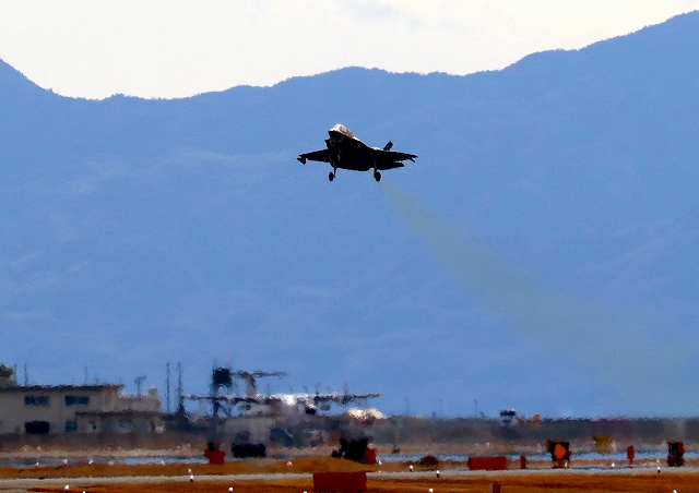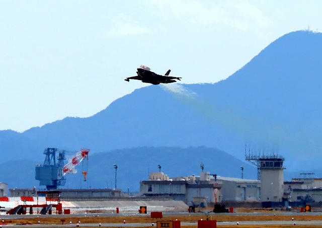 米海兵隊 F-35B ライトニングⅡ 戦闘機(岩国基地)、DT、11番機が離陸 |
