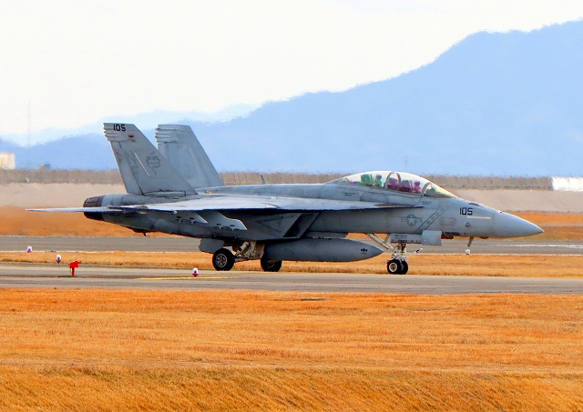 米海軍艦載機 F/A-18F スーパーホーネット 戦闘攻撃機(岩国基地)、NF、105番機 |