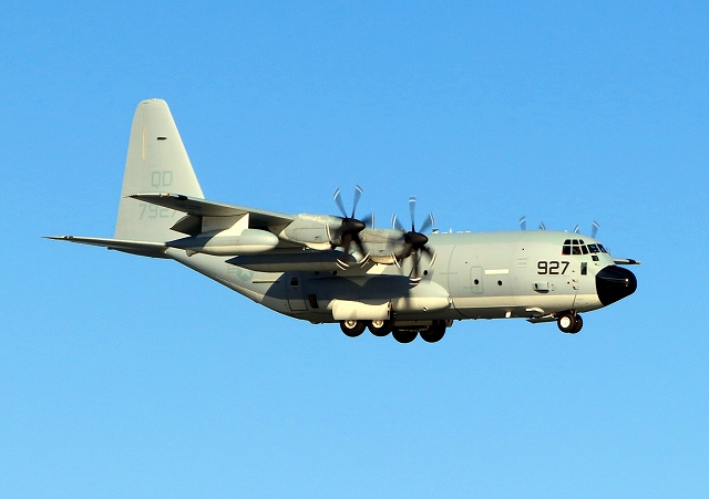 米海兵隊 KC-130J 空中給油機 スーパーハーキュリーズ(岩国基地)、QD 7927番機 |