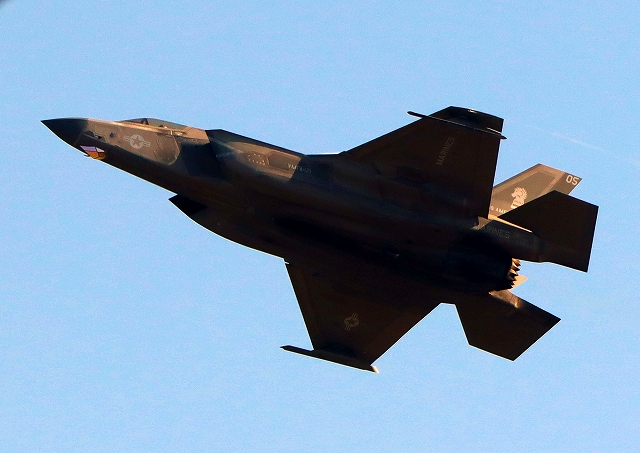 米海兵隊 F-35B ライトニングⅡ 戦闘機(岩国基地)、VK、05番機が離陸 |