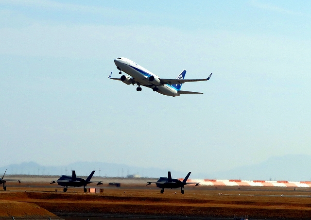 3607-3、2024年2月13日(火)F-35B ライトニングⅡ VK 05番機、全日空旅客機定期便 離陸(21)~(30)