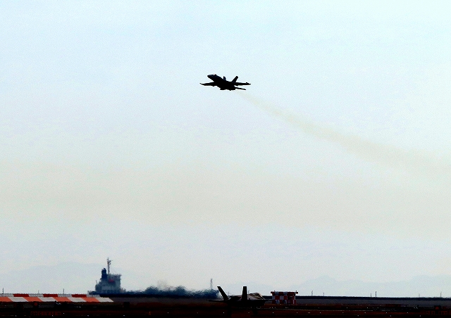 米海軍艦載機 F/A-18E スーパーホーネット 戦闘攻撃機(岩国基地)、NF、211番機が離陸 |