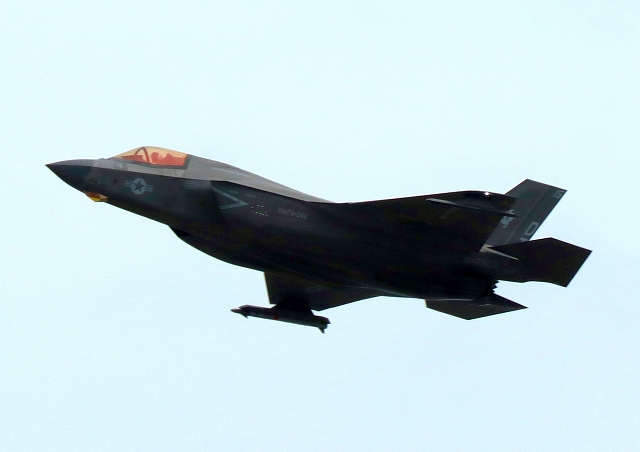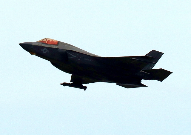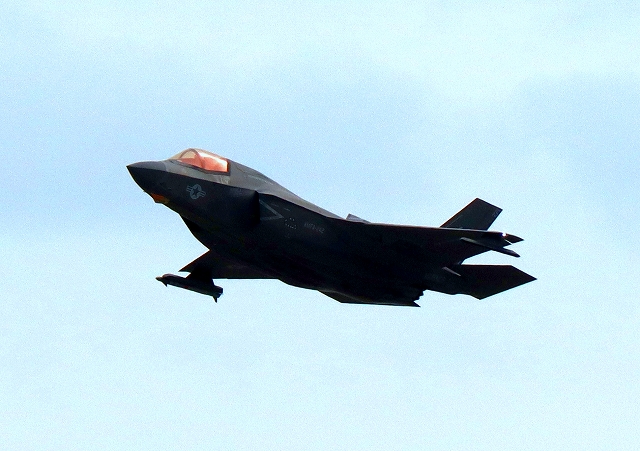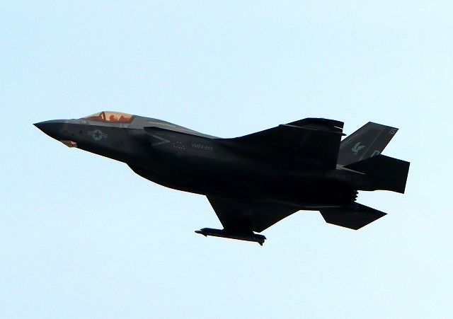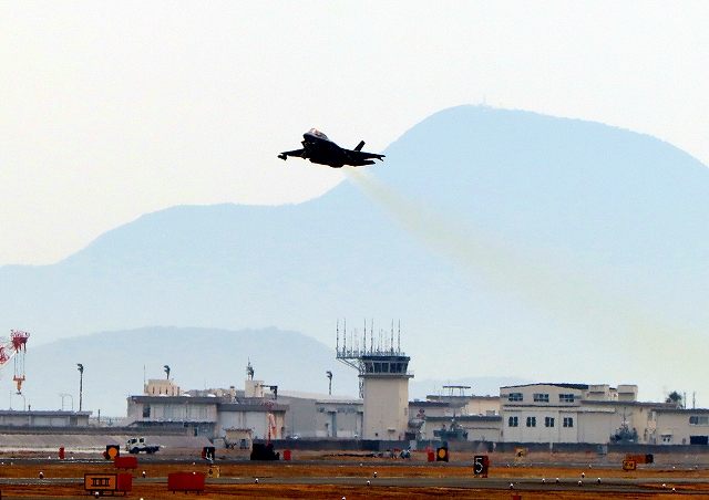 米海兵隊 F-35B ライトニングⅡ 戦闘機(岩国基地)、DT、15番機が離陸 |