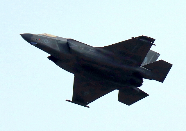 米海兵隊 F-35B ライトニングⅡ 戦闘機(岩国基地)、VK、04番機が離陸 |