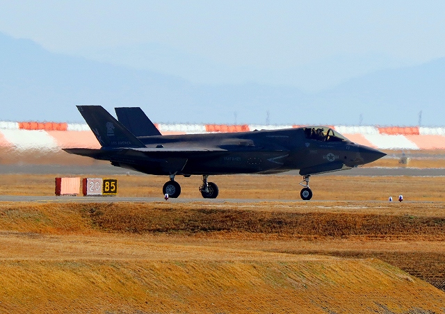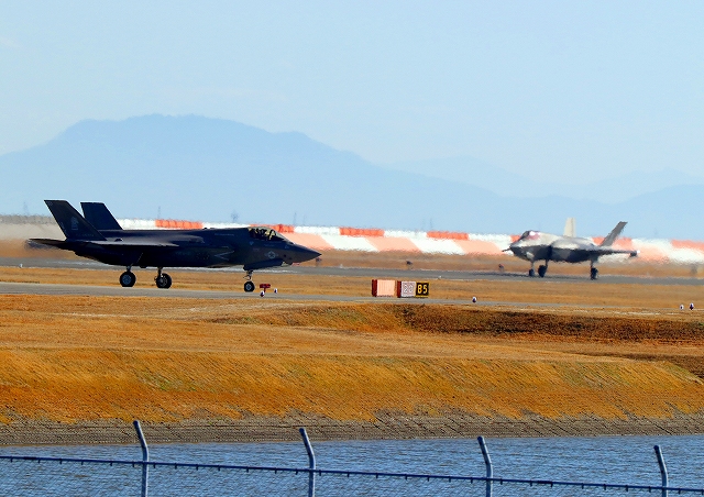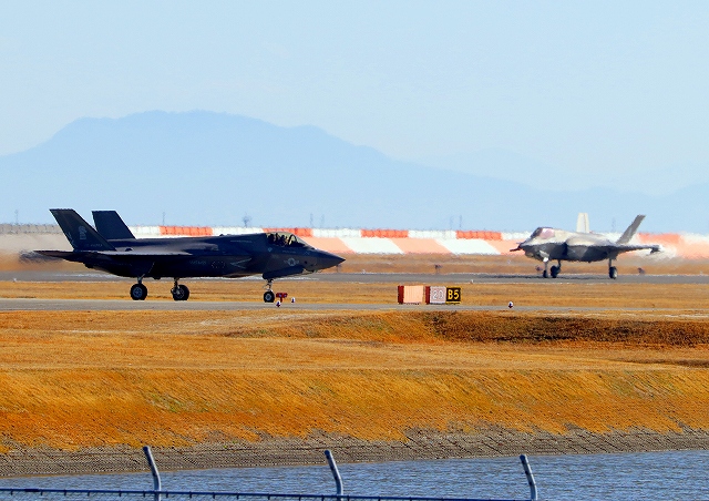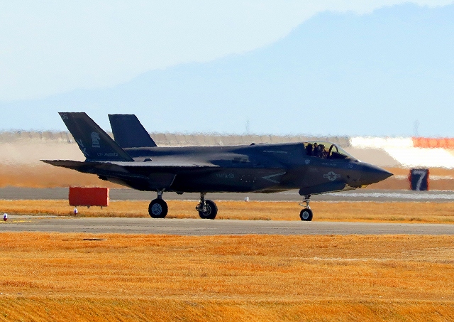 米海兵隊 F-35B ライトニングⅡ 戦闘機(岩国基地)、VK、11番機が着陸 |