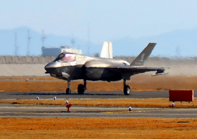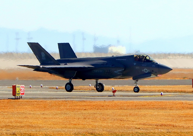 米海兵隊 F-35B ライトニングⅡ 戦闘機(岩国基地)、VK、13番機が着陸 |