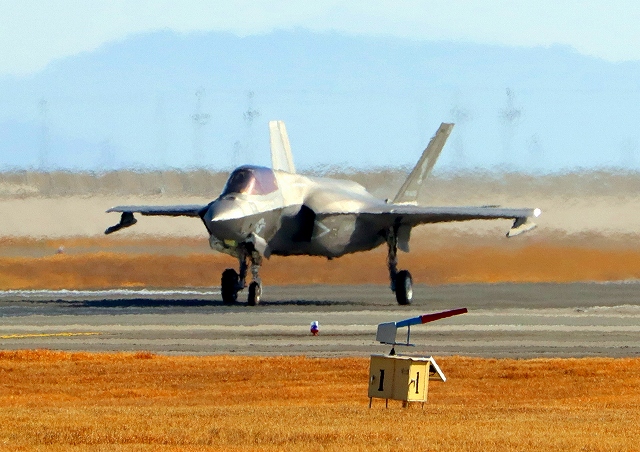 米海兵隊 F-35B ライトニングⅡ 戦闘機(岩国基地)、VK、00番機が着陸 |