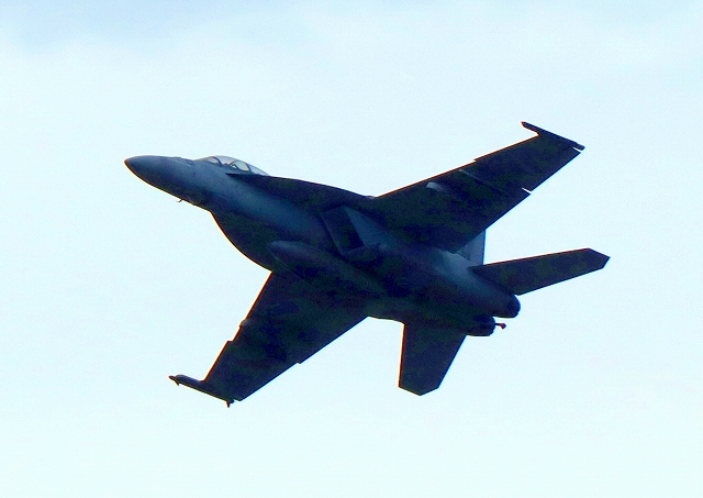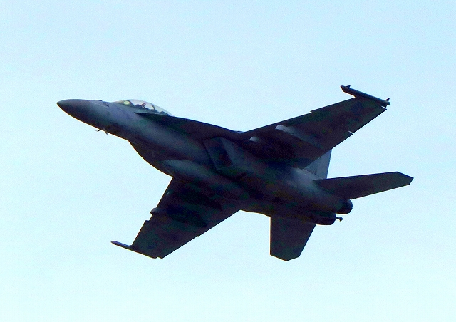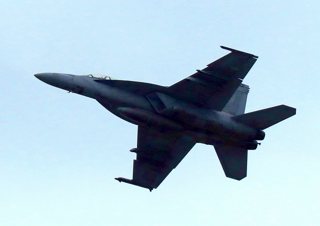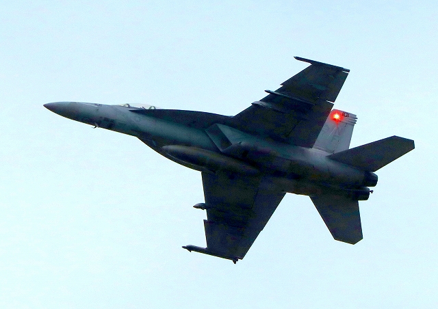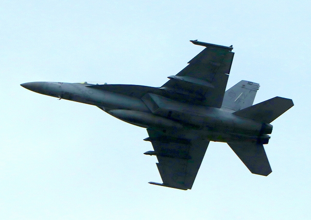 米海軍艦載機 F/A-18F スーパーホーネット 戦闘攻撃機(岩国基地)、NF、110番機が離陸 |