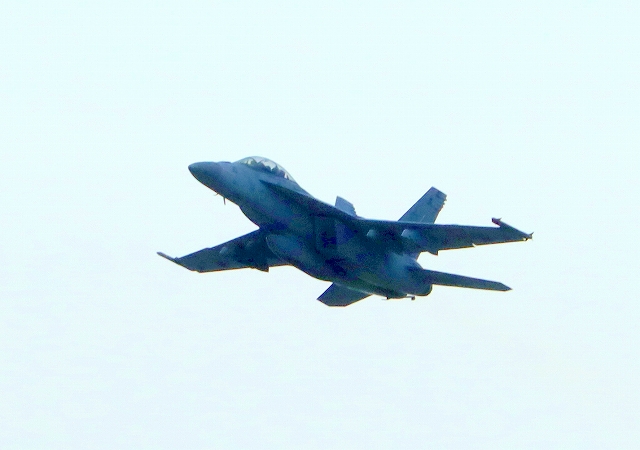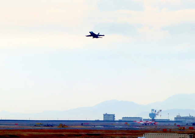 米海軍艦載機 F/A-18F スーパーホーネット 戦闘攻撃機(岩国基地)、NF、101番機が離陸 |