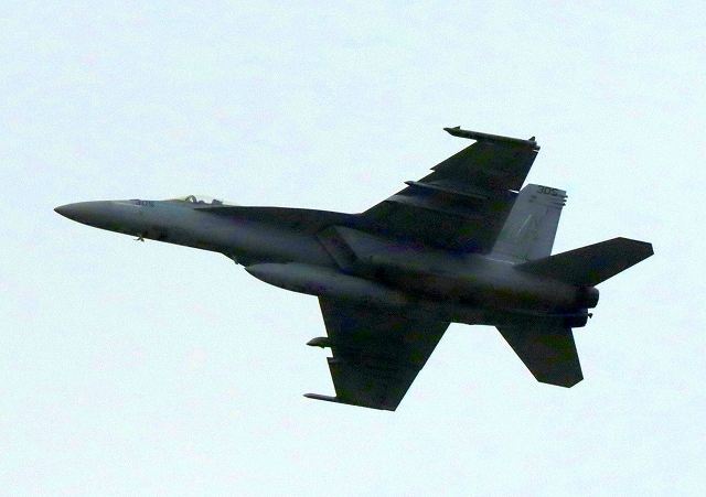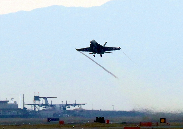 米海軍艦載機 F/A-18E スーパーホーネット 戦闘攻撃機(岩国基地)、NF、305番機が離陸 |
