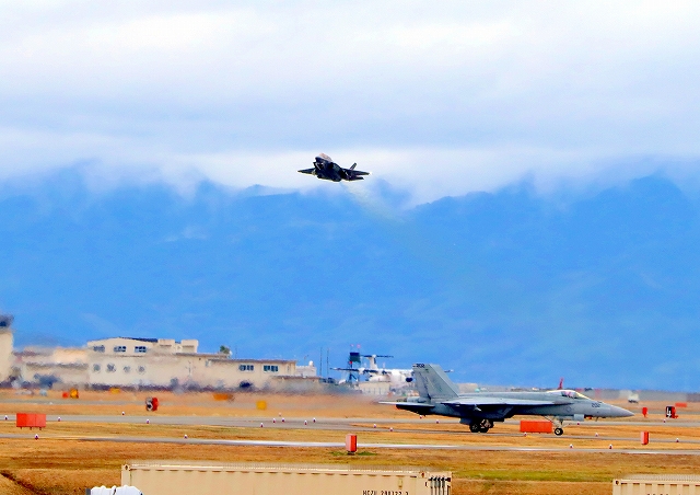米海兵隊 F-35B ライトニングⅡ 戦闘機(岩国基地)、DT、08番機が離陸 |