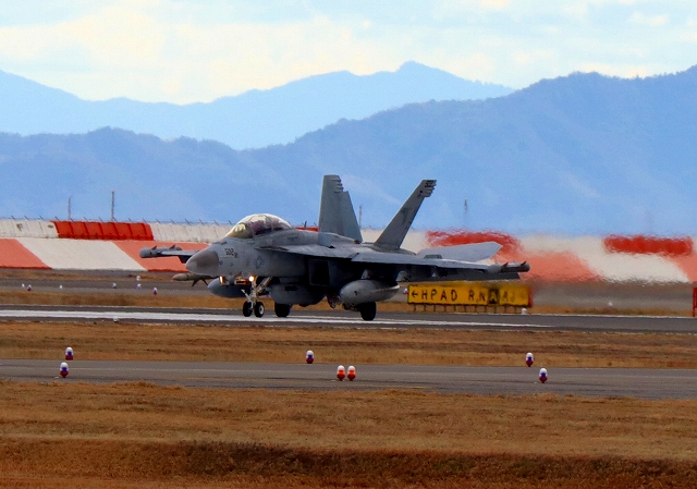 米海軍艦載機 EA-18G グラウラー 電子戦機(岩国基地)、NF、502番機が着陸 |
