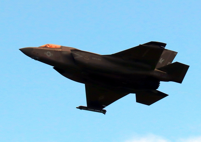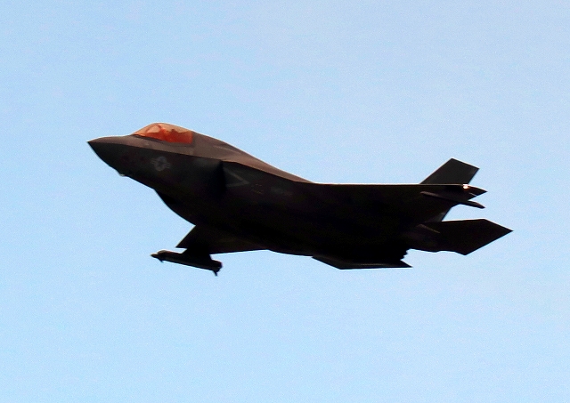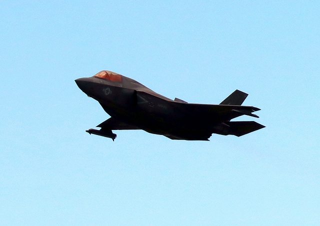 米海兵隊 F-35B ライトニングⅡ 戦闘機(岩国基地)、DT、14番機が離陸 |
