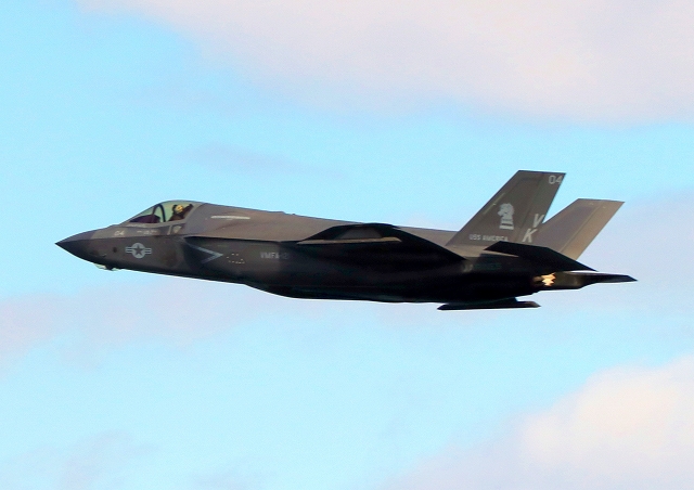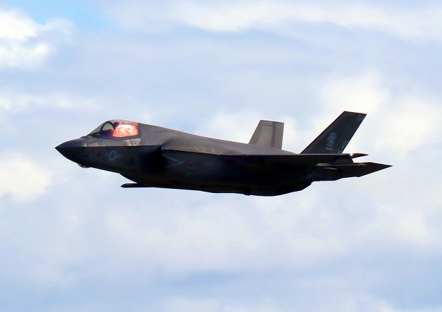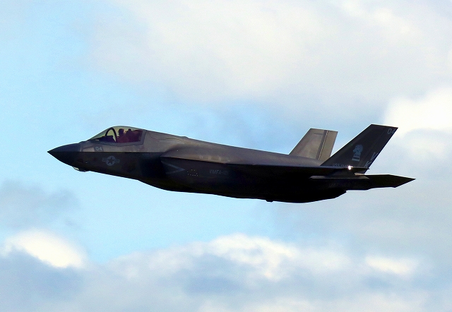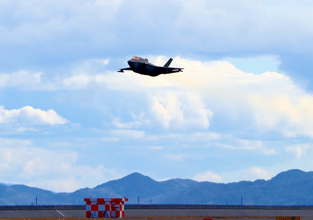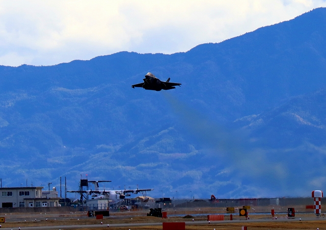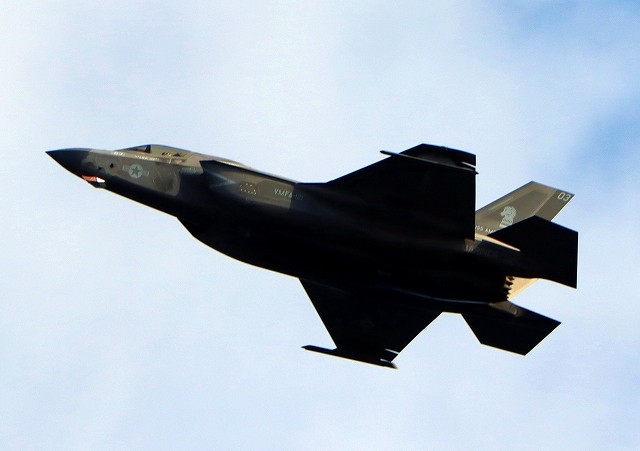 米海兵隊 F-35B ライトニングⅡ 戦闘機(岩国基地)、VK、08番機が離陸 |