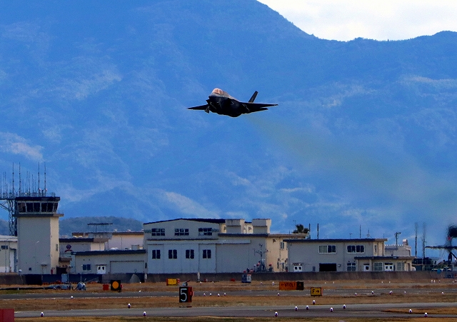 米海兵隊 F-35B ライトニングⅡ 戦闘機(岩国基地)、VK、08番機が離陸 |