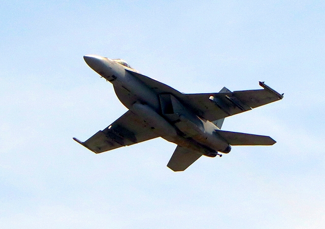 米海軍艦載機 F/A-18E スーパーホーネット 戦闘攻撃機(岩国基地)、NF、215番機が離陸 |