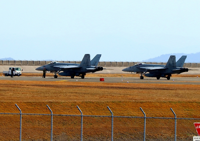 米海軍艦載機 F/A-18E スーパーホーネット 戦闘攻撃機(岩国基地)、NF、305番機、311番機が帰還 |