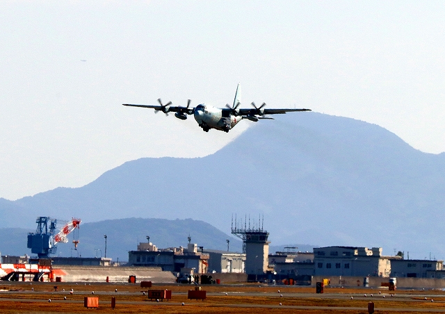 海上自衛隊 C-130R 輸送機 ハーキュリーズ(厚木基地)、9052番機が離陸 |