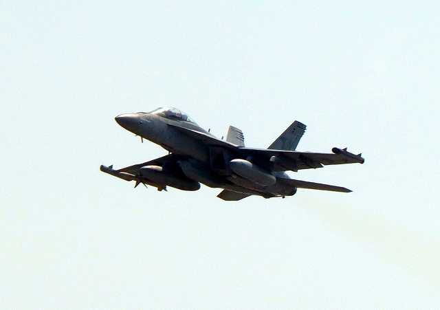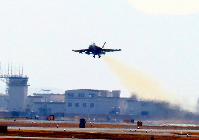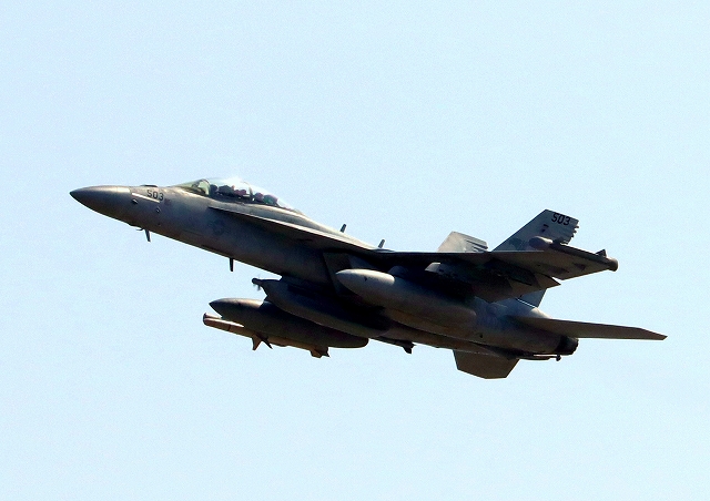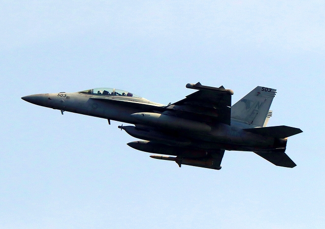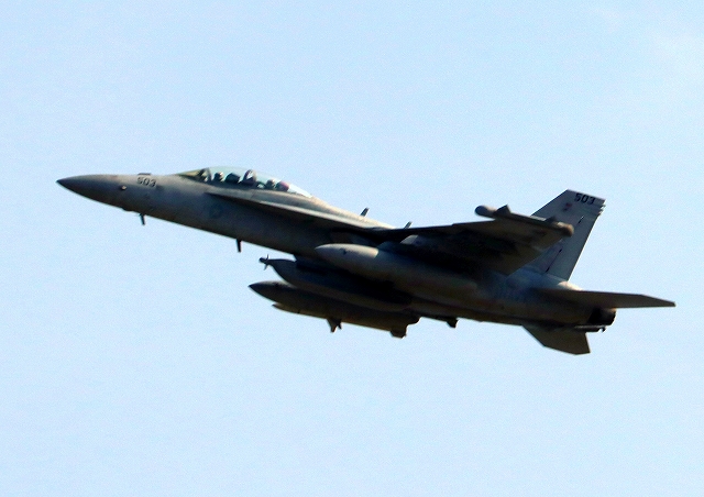 米海軍艦載機 EA-18G グラウラー 電子戦機(岩国基地)、NF、503番機が離陸 |