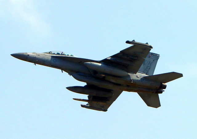 米海軍艦載機 EA-18G グラウラー 電子戦機(岩国基地)、NF、505番機が離陸 |