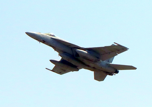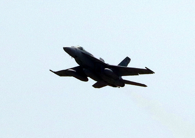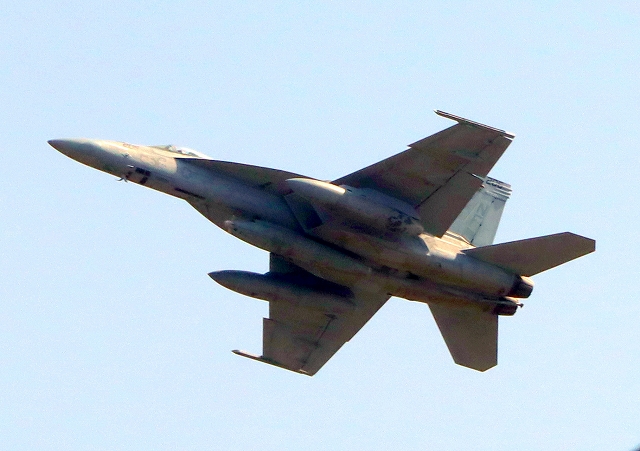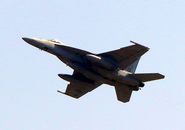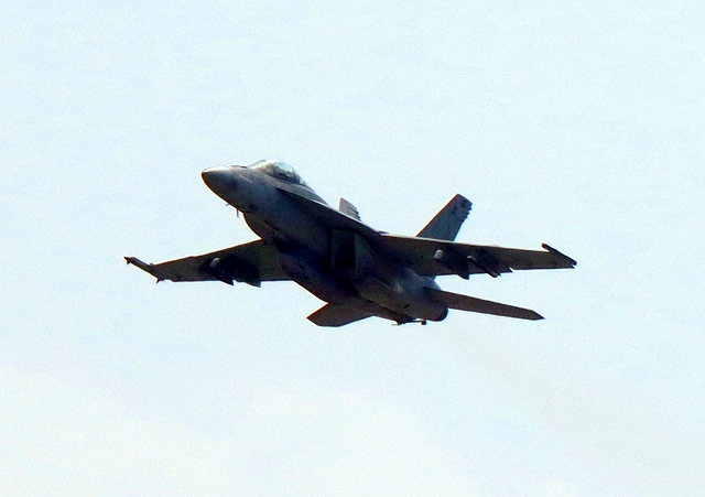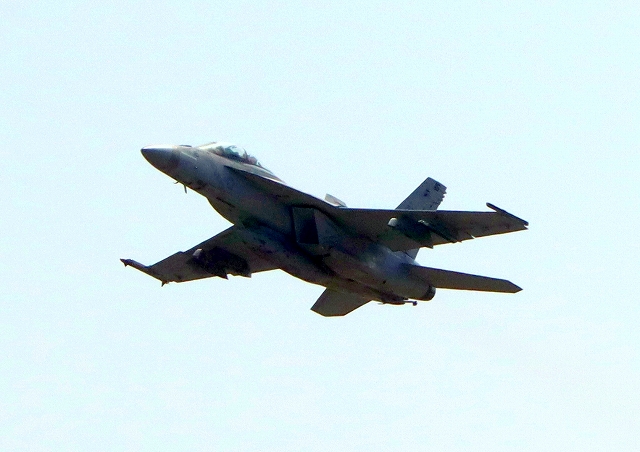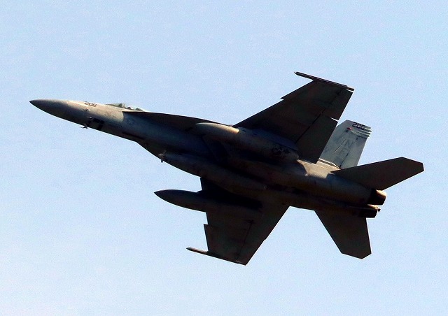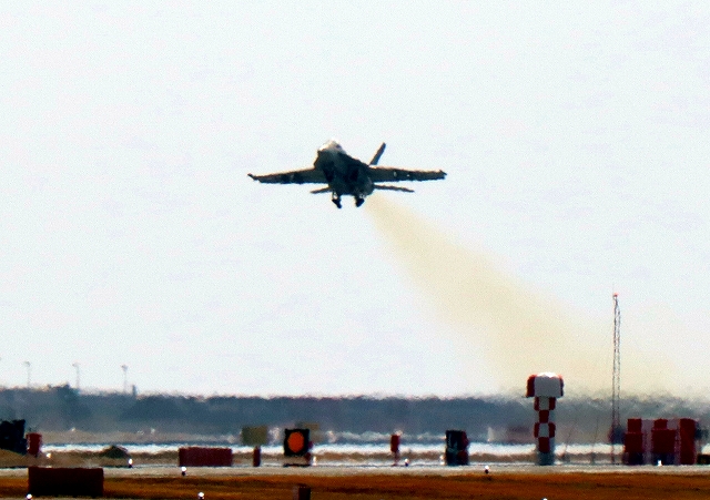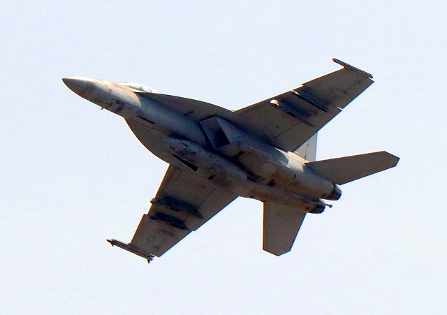 米海軍艦載機 F/A-18E スーパーホーネット 戦闘攻撃機(岩国基地)、NF、206番機が離陸 |