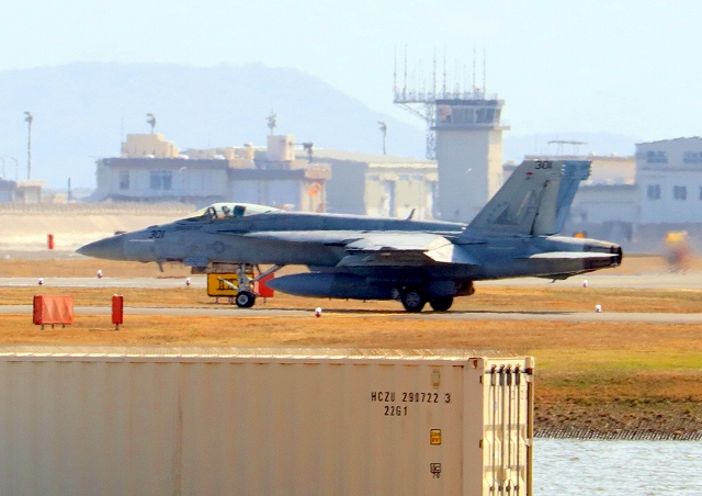 米海軍艦載機 F/A-18E スーパーホーネット 戦闘攻撃機(岩国基地)、NF、301番機が出てきました。 |
