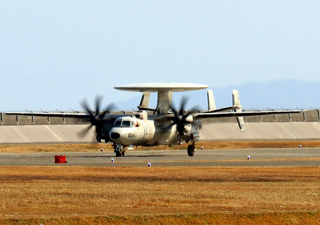 米海軍艦載機 E-2D アドヴァンスド・ホークアイ 早期警戒機(岩国基地)、604番機がメンテナンス |