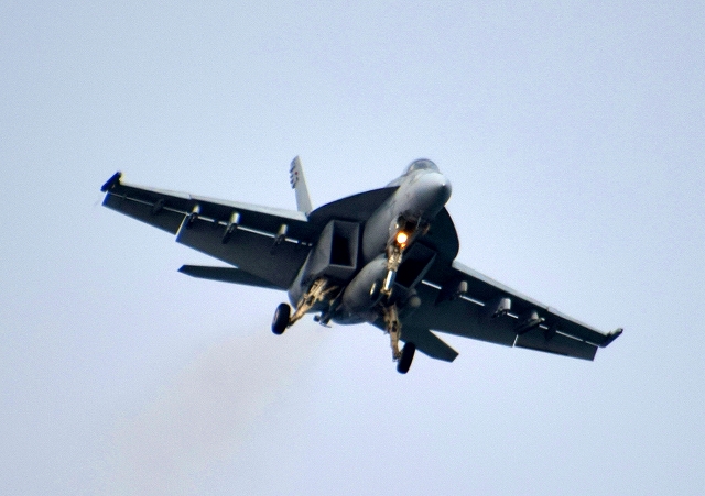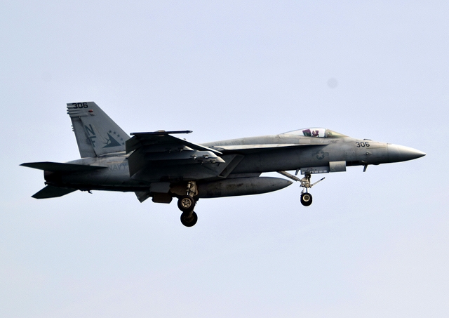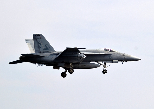 米海軍艦載機 F/A-18E スーパーホーネット 戦闘攻撃機(岩国基地)、NF、306番機が帰還 |