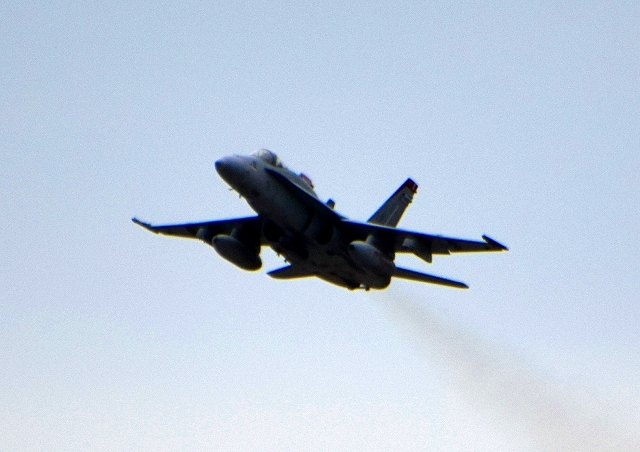 米海兵隊 F/A-18C ホーネット 戦闘攻撃機(岩国基地)、WT、10番機が離陸 |