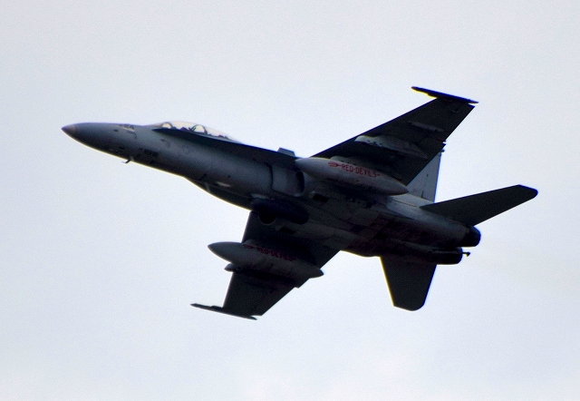 米海兵隊 F/A-18D ホーネット 戦闘攻撃機(岩国基地)、WT、24番機が離陸 |