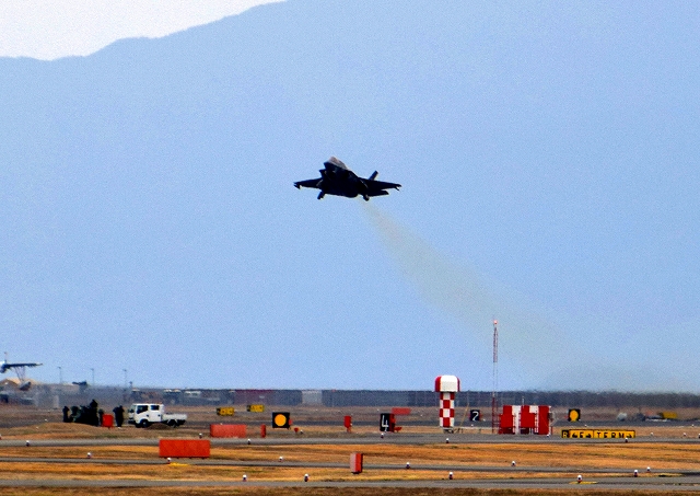 米海兵隊 F-35B ライトニングⅡ 戦闘機(岩国基地)、VK、02番機が離陸 |