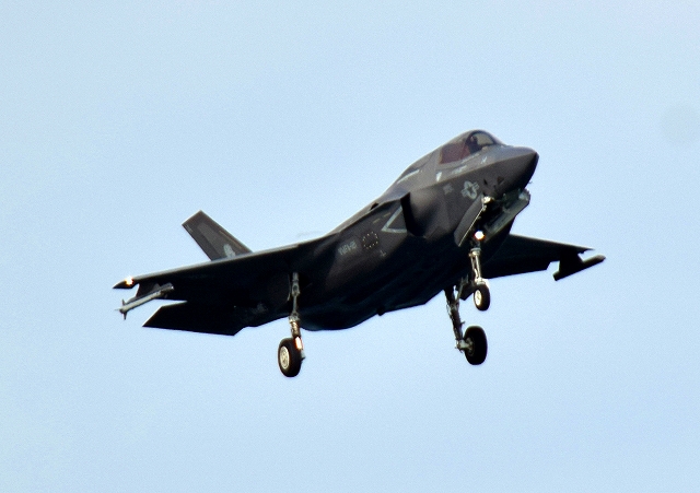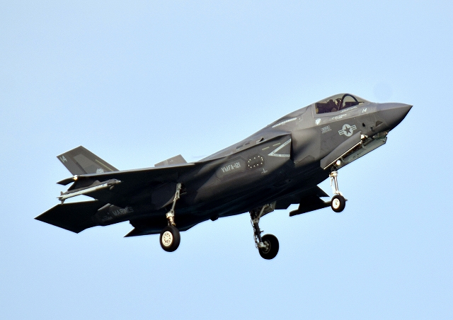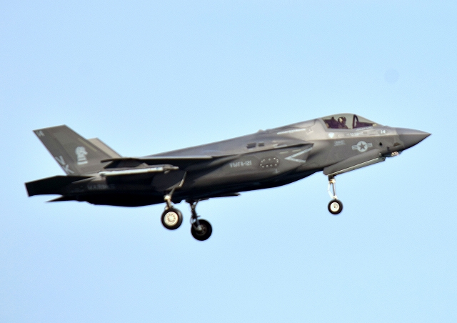 米海兵隊 F-35B ライトニングⅡ 戦闘機(岩国基地)、VK、14番機が着陸