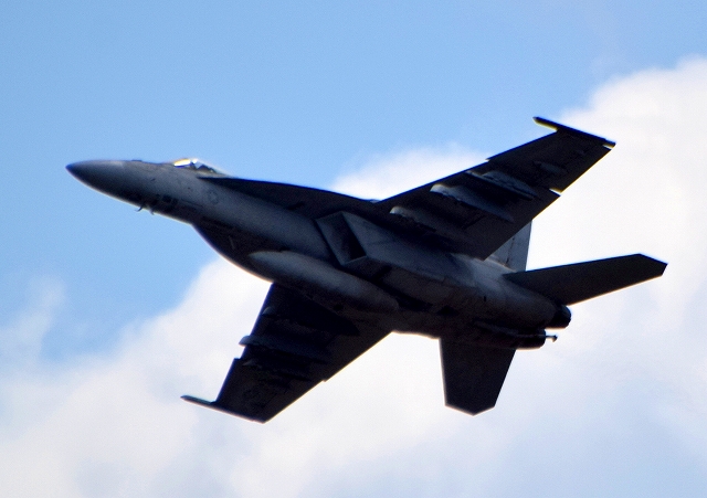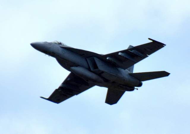米海軍艦載機 F/A-18E スーパーホーネット 戦闘攻撃機(岩国基地)、NF、310番機が離陸 |