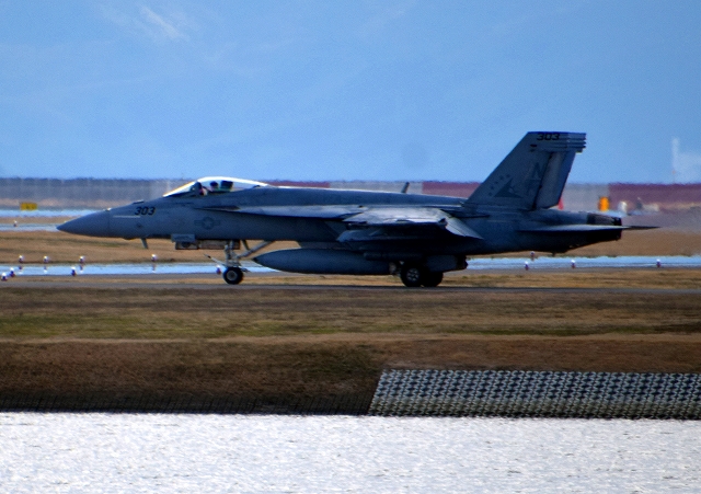 米海軍艦載機 F/A-18E スーパーホーネット 戦闘攻撃機(岩国基地)、NF、303番機が出てきました。 |