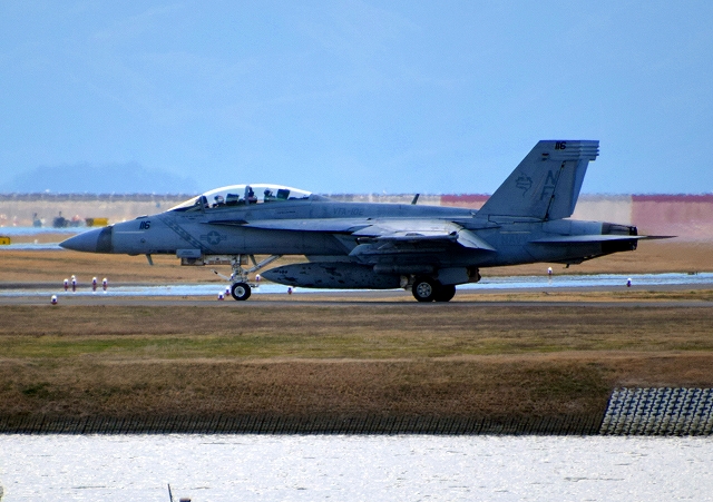 米海軍艦載機 F/A-18F スーパーホーネット 戦闘攻撃機(岩国基地)、NF、104番機 |