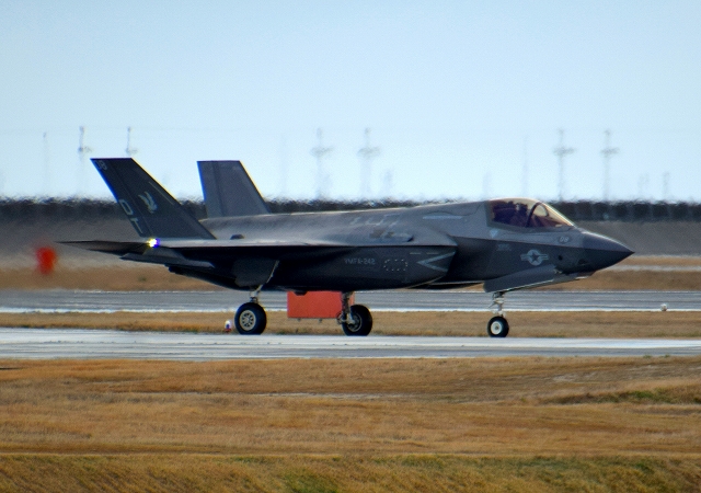 米海兵隊 F-35B ライトニングⅡ 戦闘機(岩国基地)、DT、08番機が着陸 |