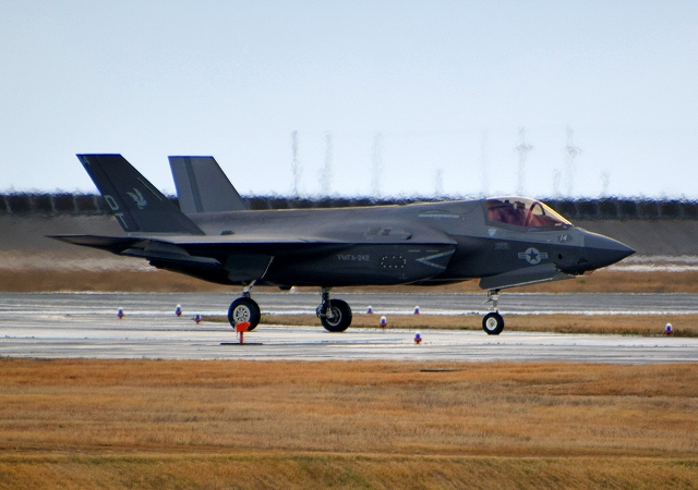 米海兵隊 F-35B ライトニングⅡ 戦闘機(岩国基地)、DT、14番機が着陸 |