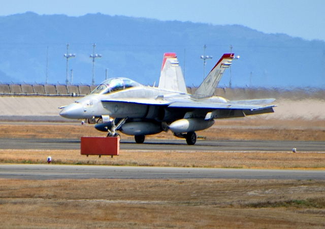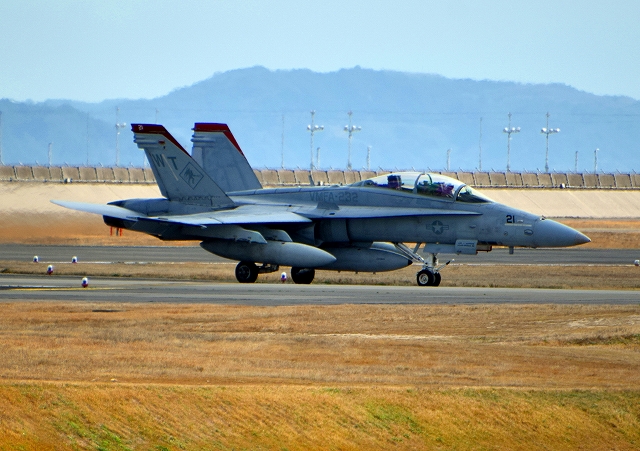 米海兵隊 F/A-18D ホーネット 戦闘攻撃機(岩国基地)、WT、21番機が着陸 |