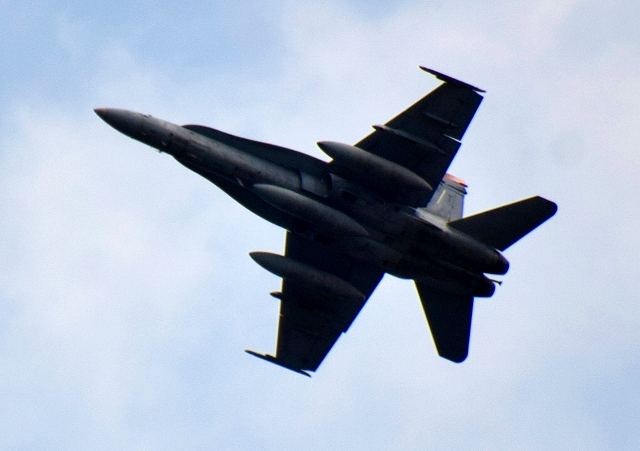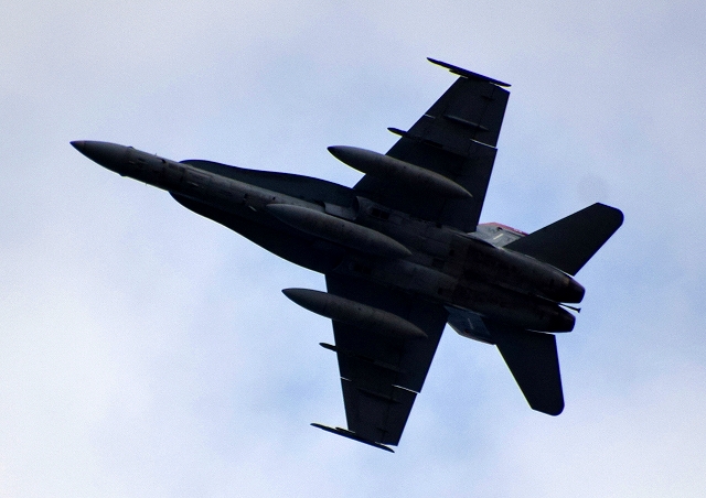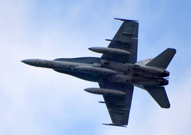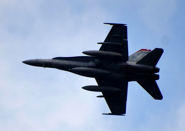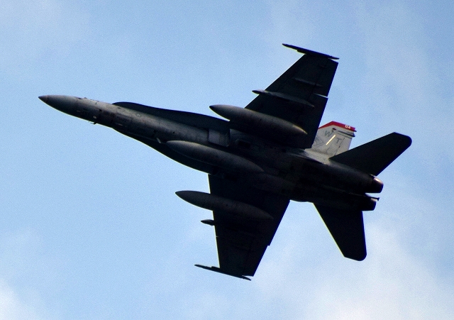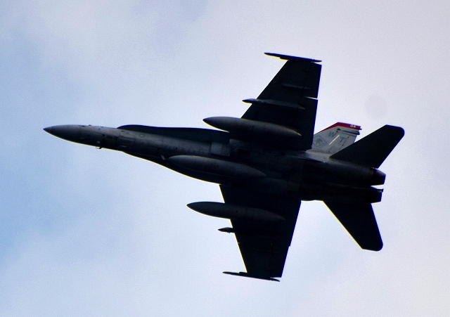 米海兵隊 F/A-18C ホーネット 戦闘攻撃機(岩国基地)、WT、04番機が帰還、旋回(2周目) |